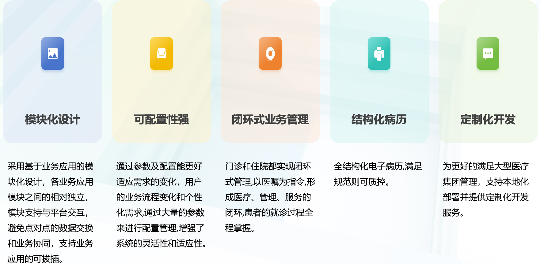产品特点云HIS平台具有模块化设计 凤凰彩票app下载,强大的可配置性以适应需求变化,闭环式业务管理与全结构化电子病历,以及支持定制化开发服务。 |