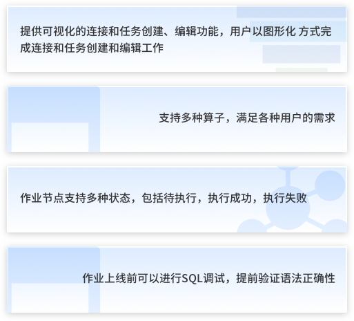 提供数据管道,实时计算,多维分析,业务流程 凤凰彩票app下载,调度运维等数据加工处理端到端的工具集,支持复杂的数据处理模型构建,提供一站式可视化开发与管理界面,支持全托管的作业调度与灵活的调度策略,具有良好的扩展性,支持算子,函数及作业的自定义开发,极大地降低了用户构建数据处理的复杂度,专注于数据价值的挖掘和探索。